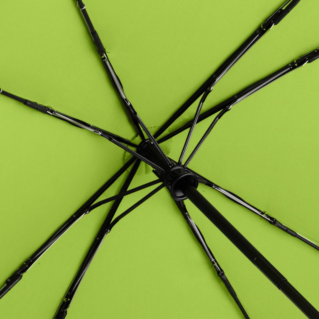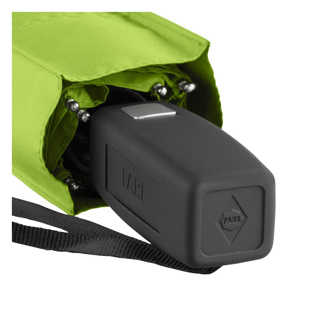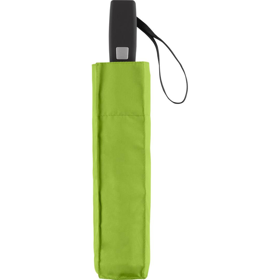 Convenient automatic open/close function for quick opening and closing, high-quality windproof system for maximum frame flexibility in stormy conditions, exclusive square Soft-Touch handle with silver push-button and double promotional labelling option, convenient sleeve in square design