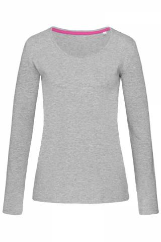 Fitted long sleeve T-shirt for women, with fashionable length made of a soft and sleek cotton-elastane-blend with wide V-neck drop and contrast neck tape.