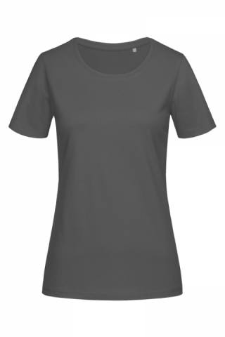 feminine shape, side seams, premium woven size label in the collar, tear-away label in the side seam