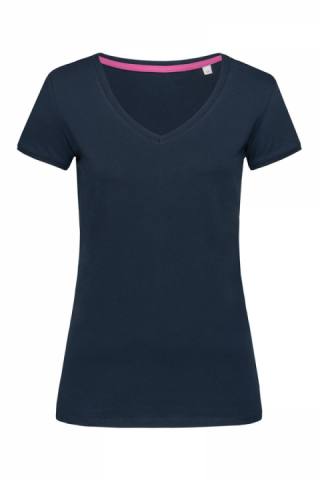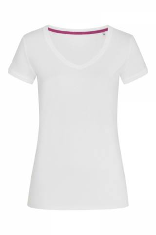 Modern T-shirt for women, with fashionable length and wide V-neck drop made of extra smooth combed ring-spun cotton.