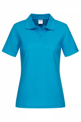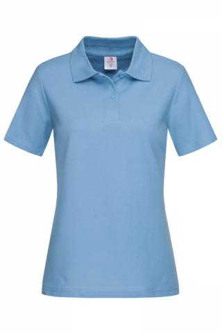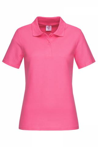Soft single jersey polo shirt for women, with a pleasing piqué look, rib collar and 2 tone-on-tone buttons.