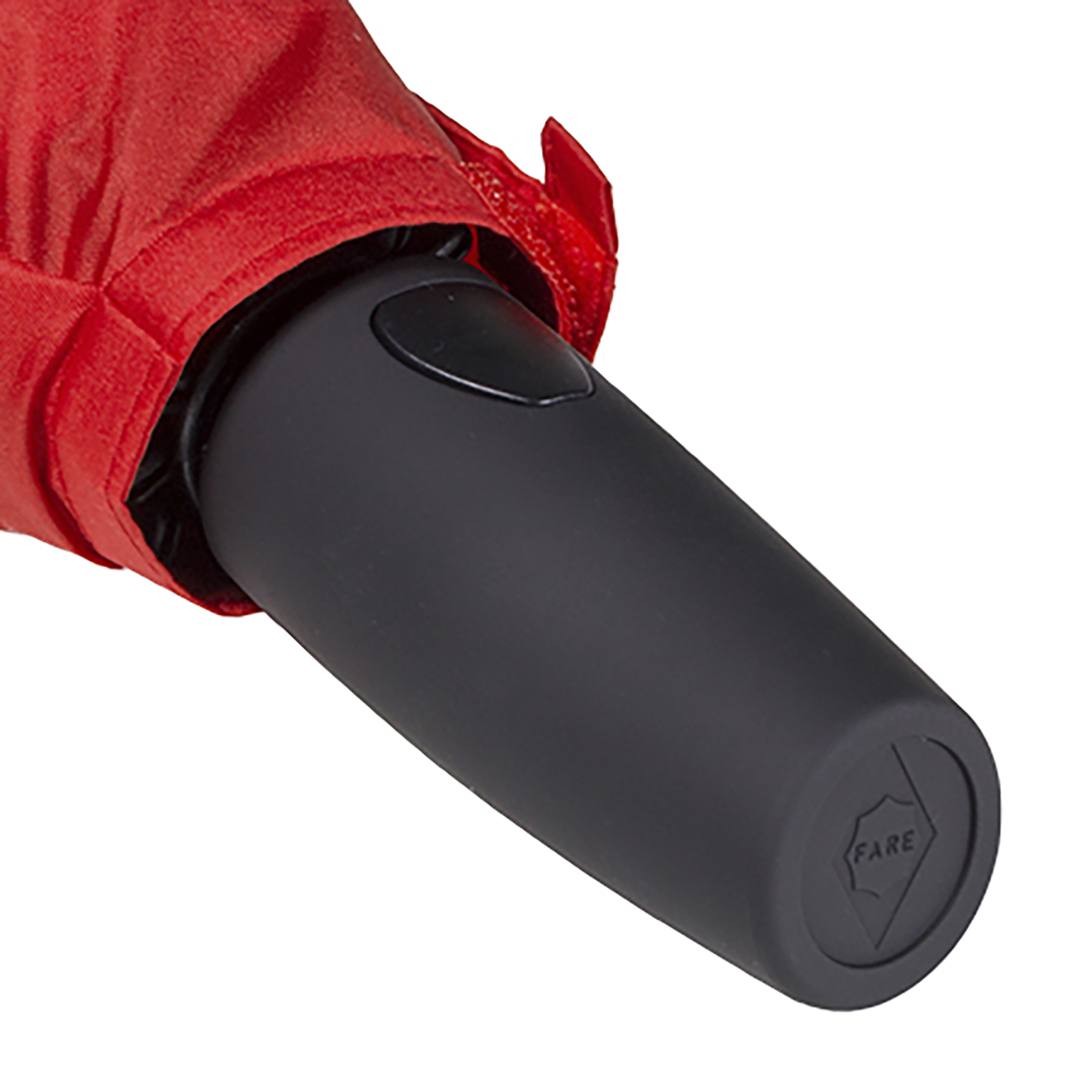 Convenient automatic function for quick opening and closing, highquality windproof system for maximum frame flexibility in stormy conditions, outwardly opening fibreglass frame, Soft-Touch handle with integrated push-button and promotional labelling option, convenient sleeve with hook-and-loop fastener. Also available as regular umbrella (art. 7715, 7719).