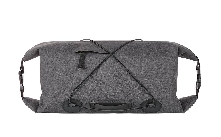 main compartment with roll closure on both sides for rapid access; front, with an elastic band for stowing, e.g. jacket, sweater, etc.; front pocket with zip; welded seams for reliable rainwater and wetness protection; device for attaching a reflector or bicycle light; strap system, allowing attachment to bicycle handlebars