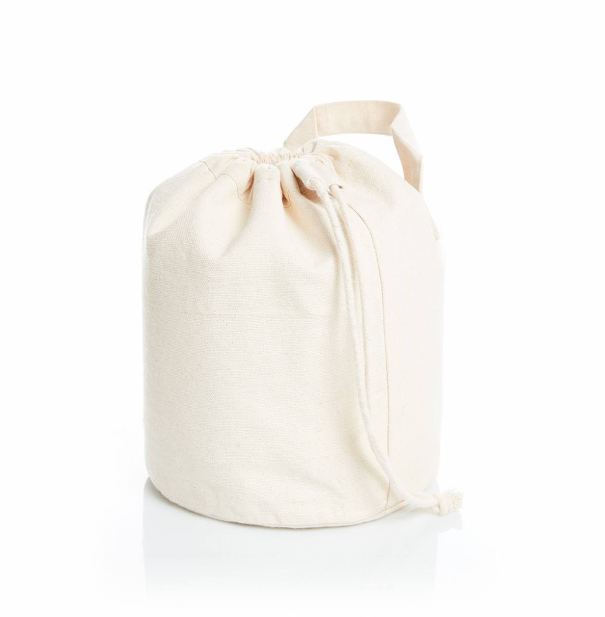 universally applicable bag with drawstring closure; three flat compartments inside; carrying loop