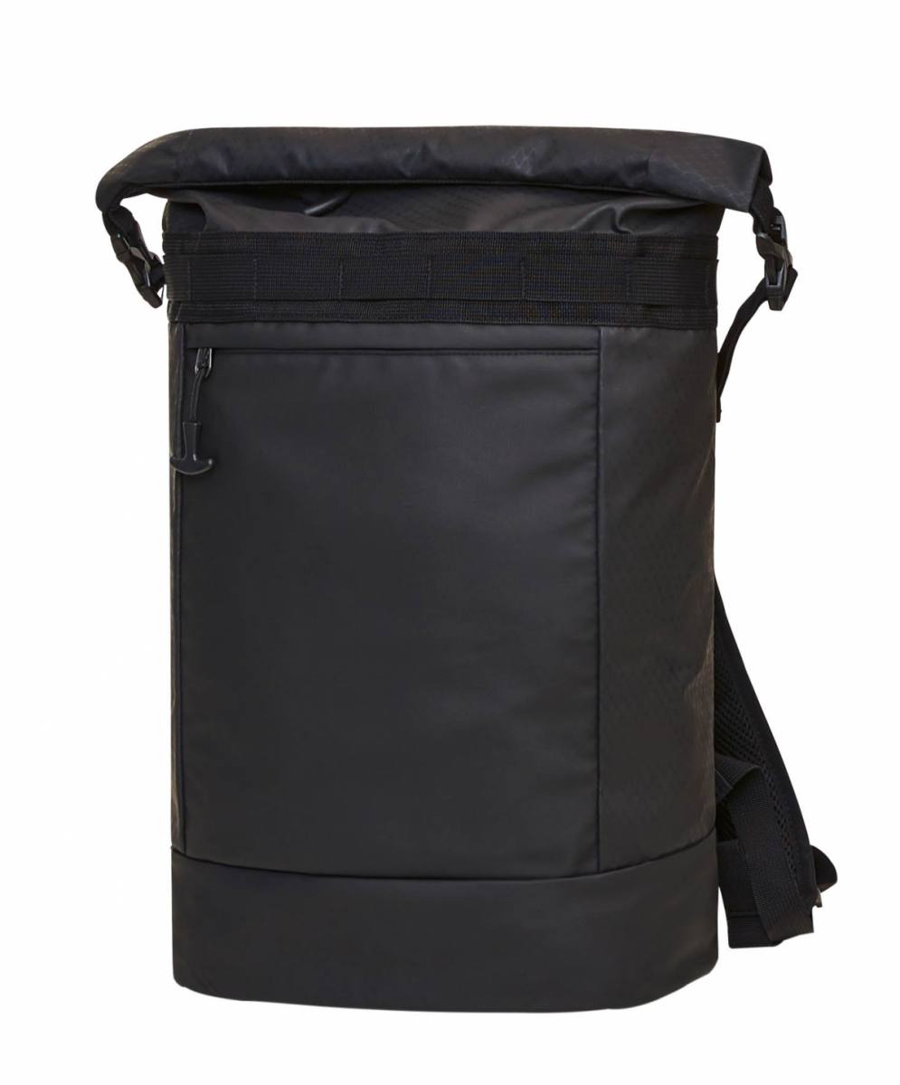 Elaborately made roll-top backpack; zipped main compartment with side buckles; padded slip-in pocket inside; large zipped front pocket; functional strap band on the front; attachment loop for trolley handle on the back; concealed zipped compartment; padded carrying system with height-adjustable chest strap; handle on both sides and back_x000D_