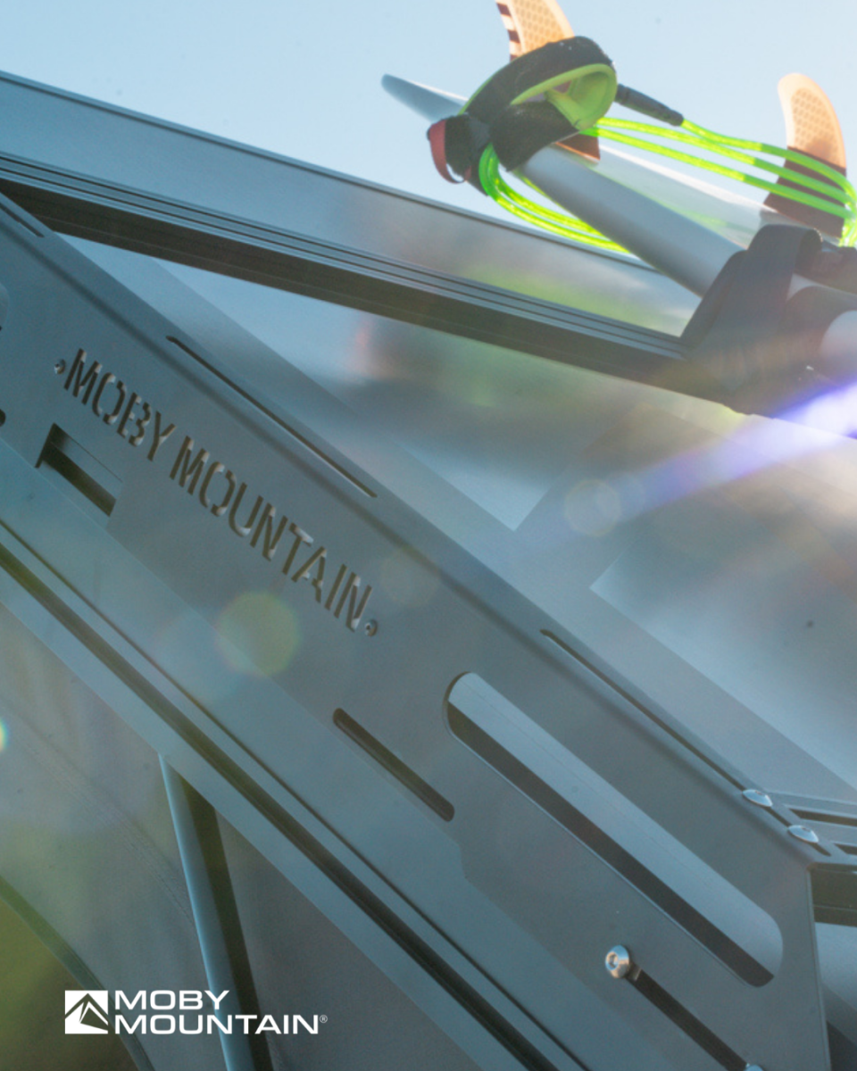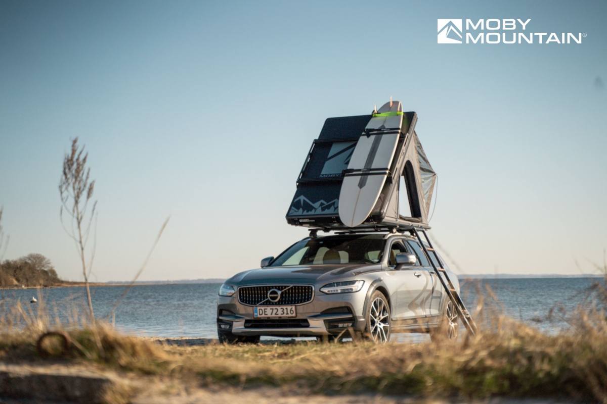 Swell M je opremljen z lestvijo, 40 mm vzmetnico in, tako kot vsi drugi strešni šotori Moby Mountain, montažnim kompletom, ki ustreza 95 % vseh strešnih nosilcev.